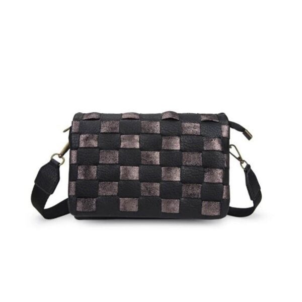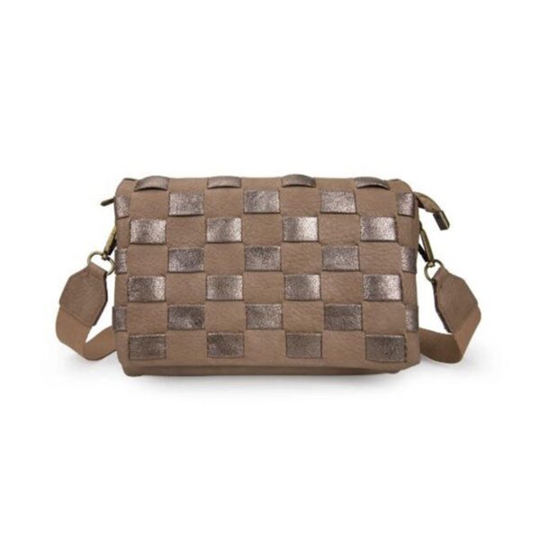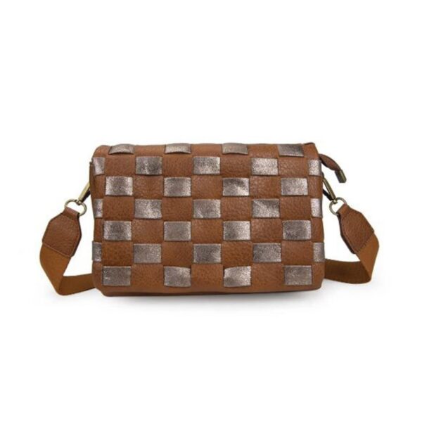 Este bolso es versátil que destaca por su atractivo diseño tejido en bloques, aportando un estilo moderno y sofisticado que se adapta fácilmente a diferentes ocasiones. Su estructura compacta permite llevar lo esencial de forma organizada sin sacrificar comodidad ni elegancia.